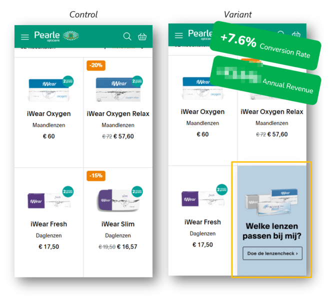 The experiment ran for about 4 weeks on Pearle.nl and showed a big increase in conversion (7.6% increase).